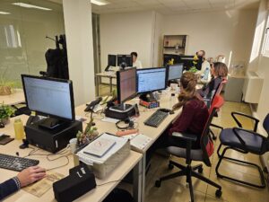 Trabajadores en la oficina de CMA Comunicación, dentro de las instalaciones del periódico IDEAL Granada